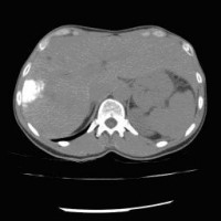 « Zurück Computertomographische Dokumentation der Embolisateinlagerung innerhalb des Tumors nach transarterieller Chemoembolisation (TACE) (Bild 2 von 5) Vorwärts »